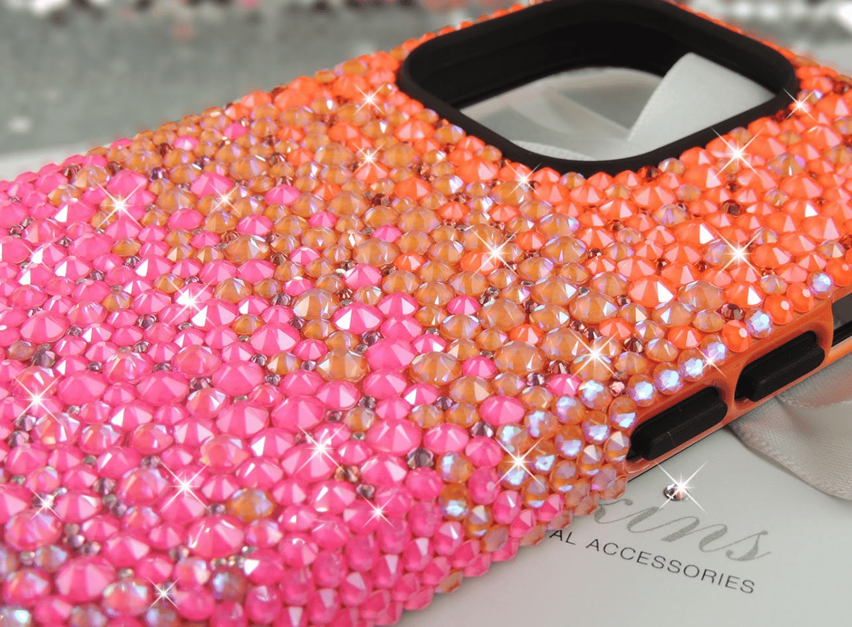 iPhone 17 Pro Max Case Fully Covered In Neon Orange, Orange Glow Delite, Neon Pink and Lotus Pink Delite