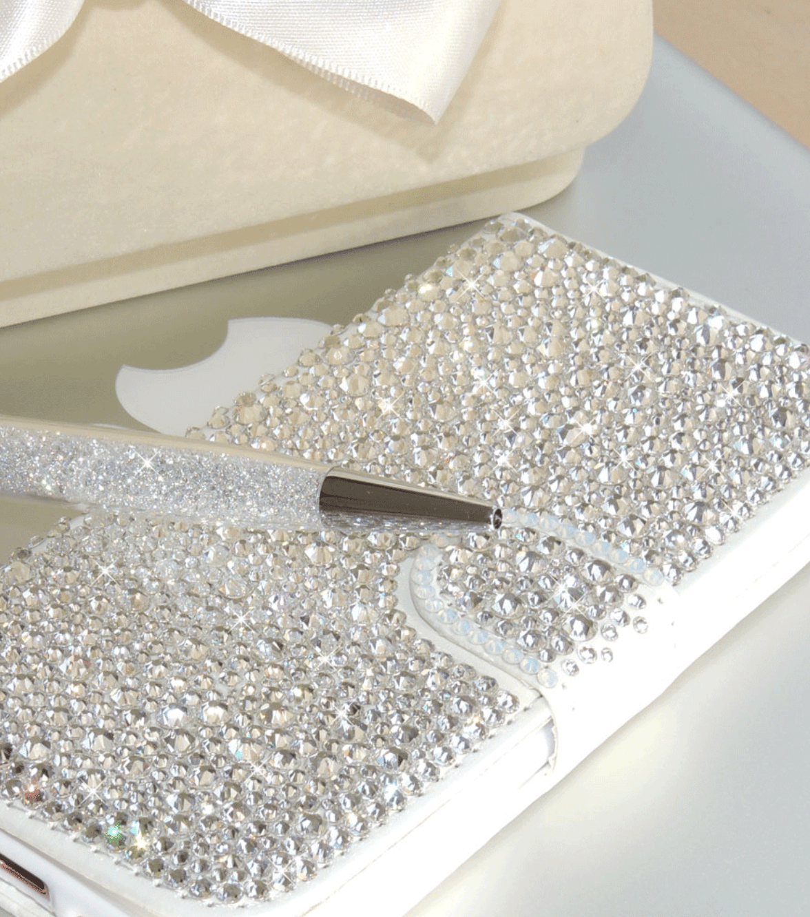 Lavender case with a mix of clear and lavender swarovski crystals covering the entire front on the case.
